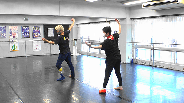 まだ義足を着けて踊ることに慣れない金氏さんに、大前さんは分かりやすくアドバイスされました。例えば、体を回転させると目が回りそうになる場合、「1点を見つめると体がブレにくい」「背骨は茶柱を立てるように」といった具合です。動きのメリハリを付けたり、体幹の角度を整えたりと、1回目同様レッスンに熱気あふれる時間となりました。