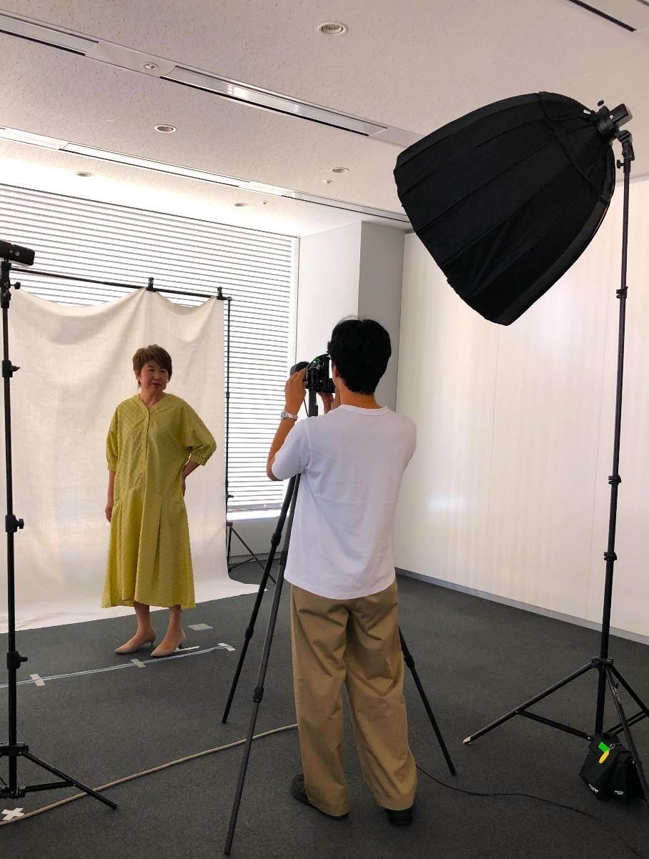 今回のイメージテーマは「オレンジ系で明るく元気に」。メイクもファッションもビタミンカラーで統一して、いざ撮影へ。永峰さんのオーダーに合わせてさまざまにモデルポーズをとり、終わったあとは「なんか自分じゃないみたいです」と感想を伝えてくれました。